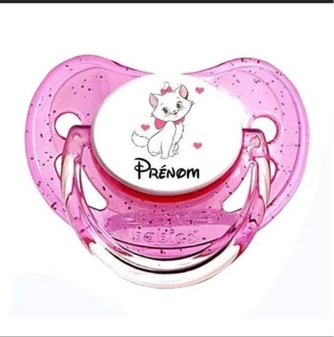 Différentes tailles, modèles et coloris de sucettes sont proposés afin de s'adapter aux mieux au goût et à la morphologie de votre enfant. Il ne vous reste plus qu'à préciser le prénom à inscrire et la couleur du texte sur la sucette.