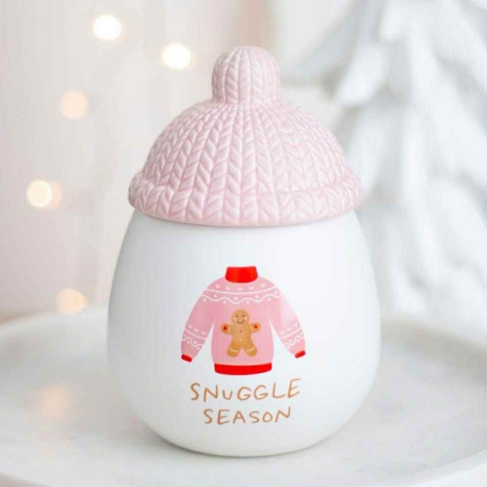 Soyez à l'aise et douillet cet hiver avec ce brûleur à mazout "Snuggle Season", avec un couvercle de chapeau bobble rose confortable - parfait pour préserver vos parfums festifs préférés lorsqu'ils ne sont pas utilisés