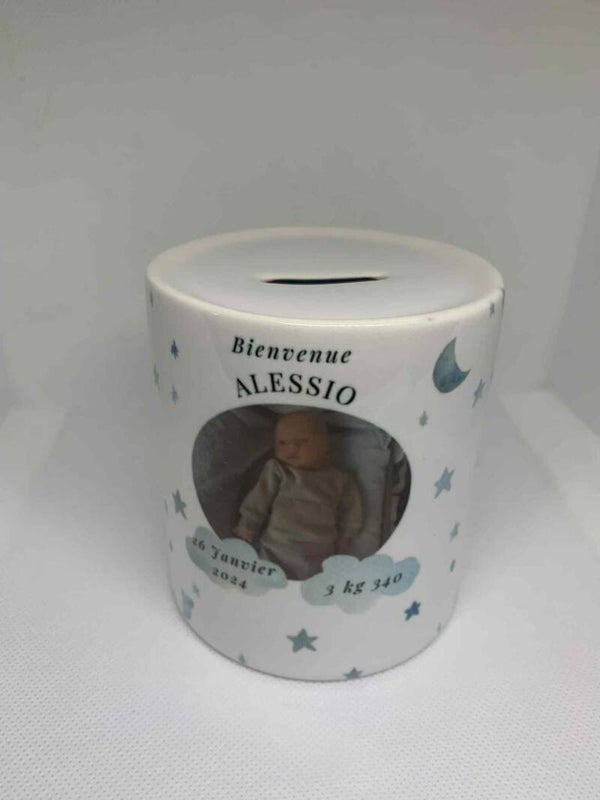 Fabriquée en céramique de qualité, cette tirelire est solide et durable. Grâce à la personnalisation (prénom, date, logo, message ou design sur mesure), elle devient un objet unique qui vous ressemble.